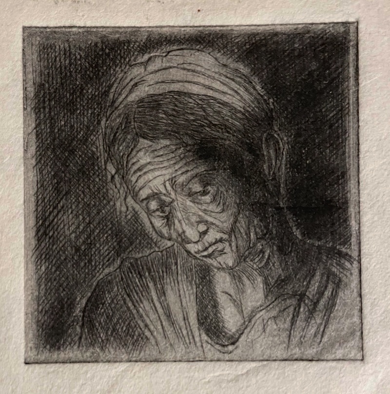 Kaltnadelradierung auf Zink, 5 × 5 cm, Adaption (Detail) nach Caravaggio,